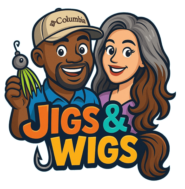 Jigs & Wigs began as a playful moment between husband and wife — a late-night mix of fishing videos and wig tutorials. While I was checking out new jigs online, she was watching her favorite wig influencer, and out of nowhere she laughed and said, “Look at us, jigs and wigs!”